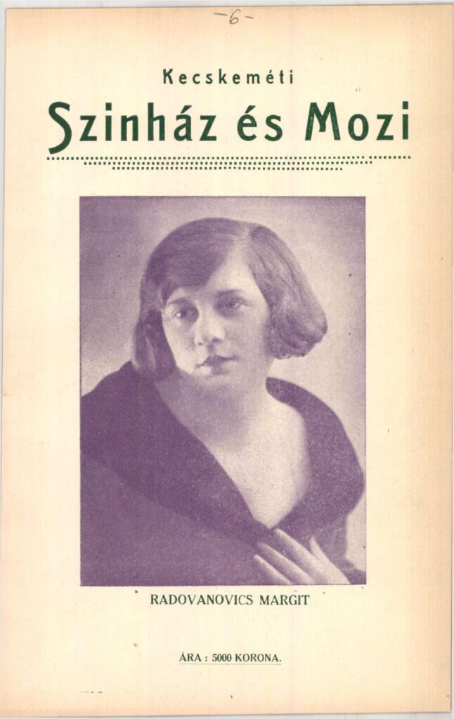Ami azt illeti, a boldog befejezésről mindig kedvenc naivája jut eszébe és 1925 ragyogó éve. Szemei előtt Radovanovics Margit jelent meg, a kis Radova, akivel gyakran futott itt a Gergelyben össze, a színészek törzsasztalánál. Már ez a törzsasztal is különös, az előadás szünetében gyakran találkozott itt színész és rajongó, előzékenyen maga elé engedve a művészeket, hiszen nekik kötött idejük volt elfogyasztani egy könnyed fröccsöt vagy más italt. Mozgalmas az élet a Gergely ezen sarkán, a kis Radova körül döngenek az udvarlók. A haja fekete, a szeme fekete és mellé csacsog, ahogy csak a 18 éves naivák tudnak csacsogni. A férfiakban válogat: csak 24 éves korig imponálnak neki…“ Azért akad a kívánalmaknak megfelelő jelölt, bolyban járnak vele az utcán, fürtökben lógnak az asztalánál. De még a kiskutyája is egyéniség, meg is énekelték a Kecskeméti Színház és Mozi hasábjain: