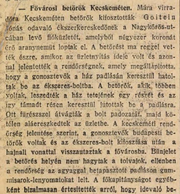 ti Napló jóvoltából megtudhatjuk, hogy 1912-ben már a fővárosi betörők is Kecskemétre jártak.