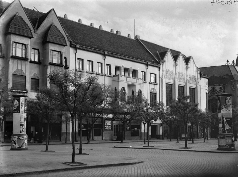 Bajtay Ferenc 1932 körül készült felvételén még látszódik például a Művésztelep vezetőjének, Iványi Grünwald Bélának a díszterem feletti hármas oromzatra festett Allegóriák című kompozíciója. (Kép forrás: Kecskeméti Katona József Múzeum)