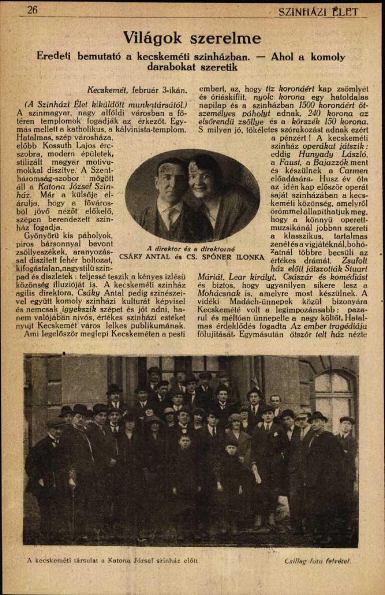 (Kecskeméti Színház és Mozi, 1925. november 14., 3. szám)