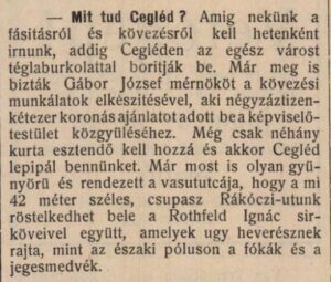 Rothfeld Ignácról bizonyosan tudni, hogy 1883-ban veszi át Mayer János és tsa temetkezési vállalkozását, ami a református bazárban működött. Sikeresen űzte foglalkozását, de a századfordulón a sírkőkereskedési- és gyártási ágazatra vált, ugyanis ebben az időben már ekként hivatkoznak rá, mikor úgy emlegetik, mint a Rákóczi utca megépülésének egyik kerékkötőjét. Nem akarta ugyanis hagyni, hogy kisajátítsák a Klapka utca sarkán lévő házát és telkét, ami a leendő Rákóczi utca nyomvonalában volt. Végül nem túl békés úton, de megoldódott a dolog, a Károlyi utca-Rákóczi utca sarkán kapott egy cseretelket, ahol a műhelyét is működtette, ám gyárosi tevékenységét nem nézték jó szemmel a város egyik legfontosabb presztizsberuházásának közepén: szanaszét heverő sírkőfókákról ír a Magyar Alföld a jelenséggel kapcsolatban.